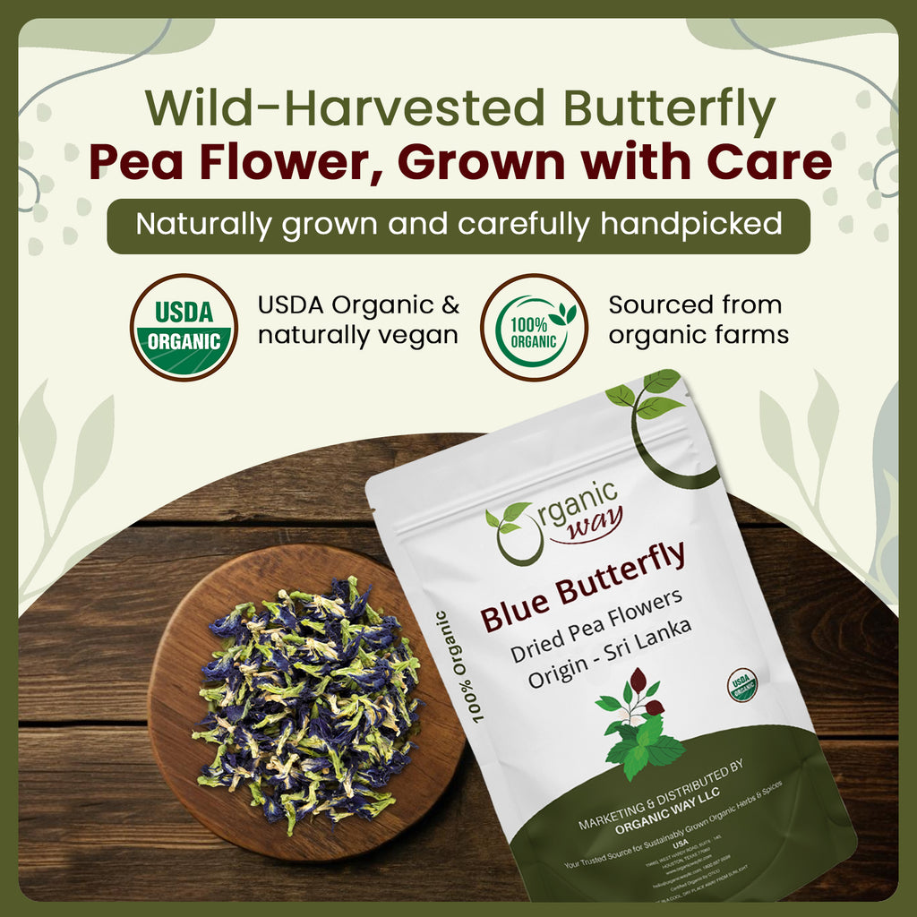 Dried Blue Butterfly Pea Flowers | Vegan, Non GMO & Gluten Free | USDA Certified | Raw from India