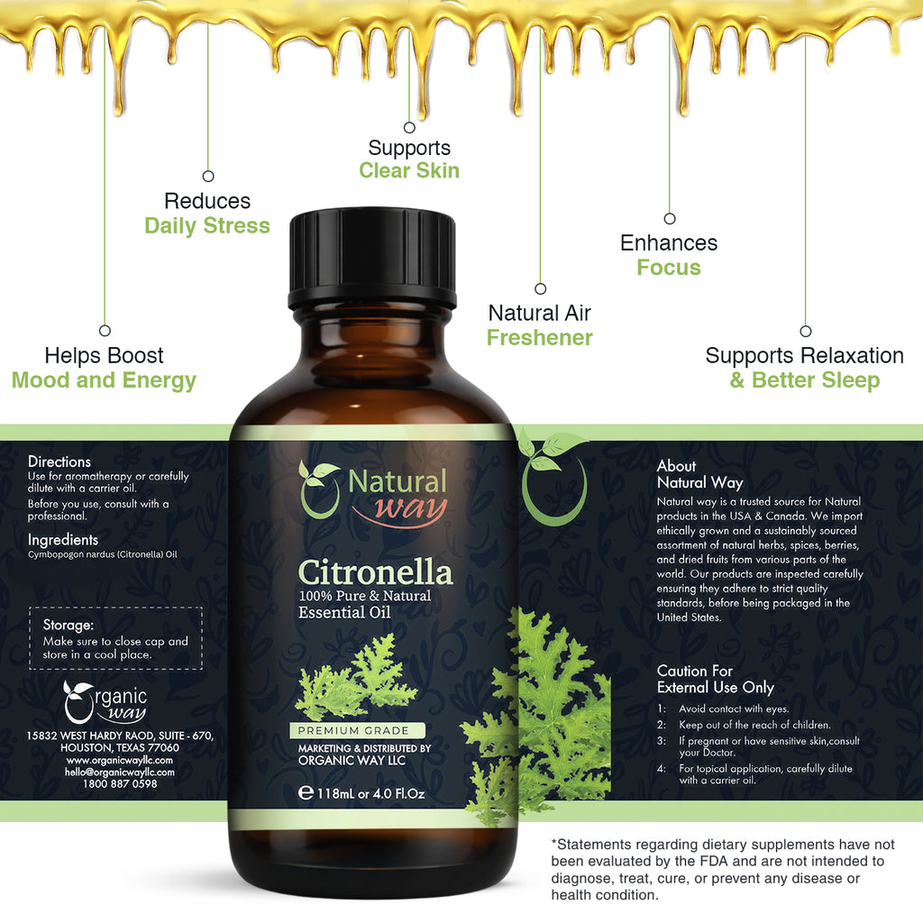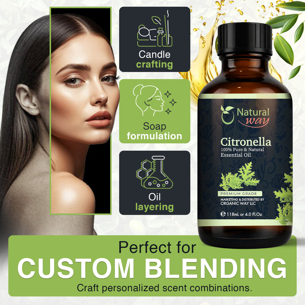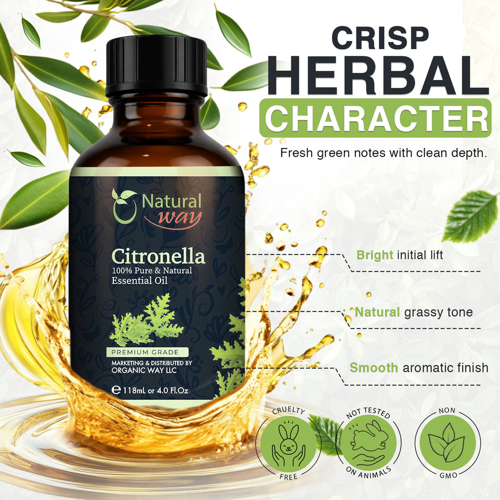 Citronella Essential Oil for Diffusers | Natural Aroma Oil for Home Fragrance, Humidifier & DIY Candle Making, Long Lasting Scent for Office, Bedroom & Soothing Scent 4 Fl Oz (120 mL)