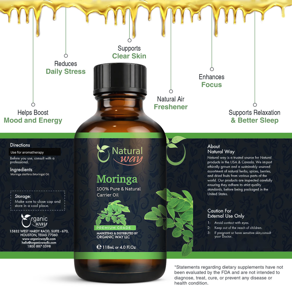 Moringa Carrier Oil for Diffusers, Dry Skin, Hair | Natural Aroma Oil for Home Fragrance, DIY Beauty Blends & DIY Candle Making, Long Lasting Scent for Office, Bedroom Scent 4 Fl Oz (120 mL)
