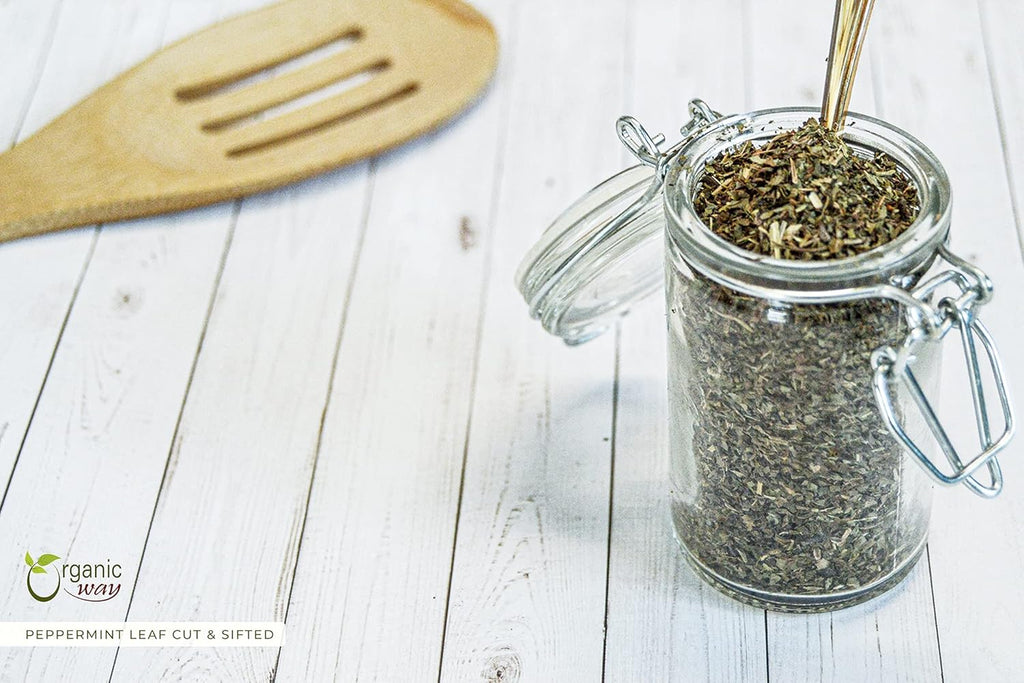 Our cut and sifted peppermint leaf means that the herb is not sold in whole form, but rather "cut" into smaller pieces and then "sifted" to remove the small pieces and dust that result from the cutting process.